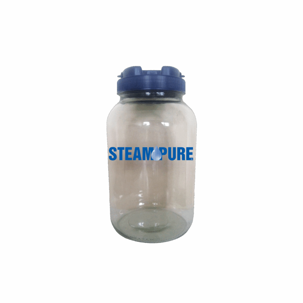 This 1 Gallon Glass Jug with lid and SteamPure decal can be used for water storage or other drinks. ย Order extras so that you can always have one empty ready to use with your water distiller. ย It is long lasting and easy to clean.