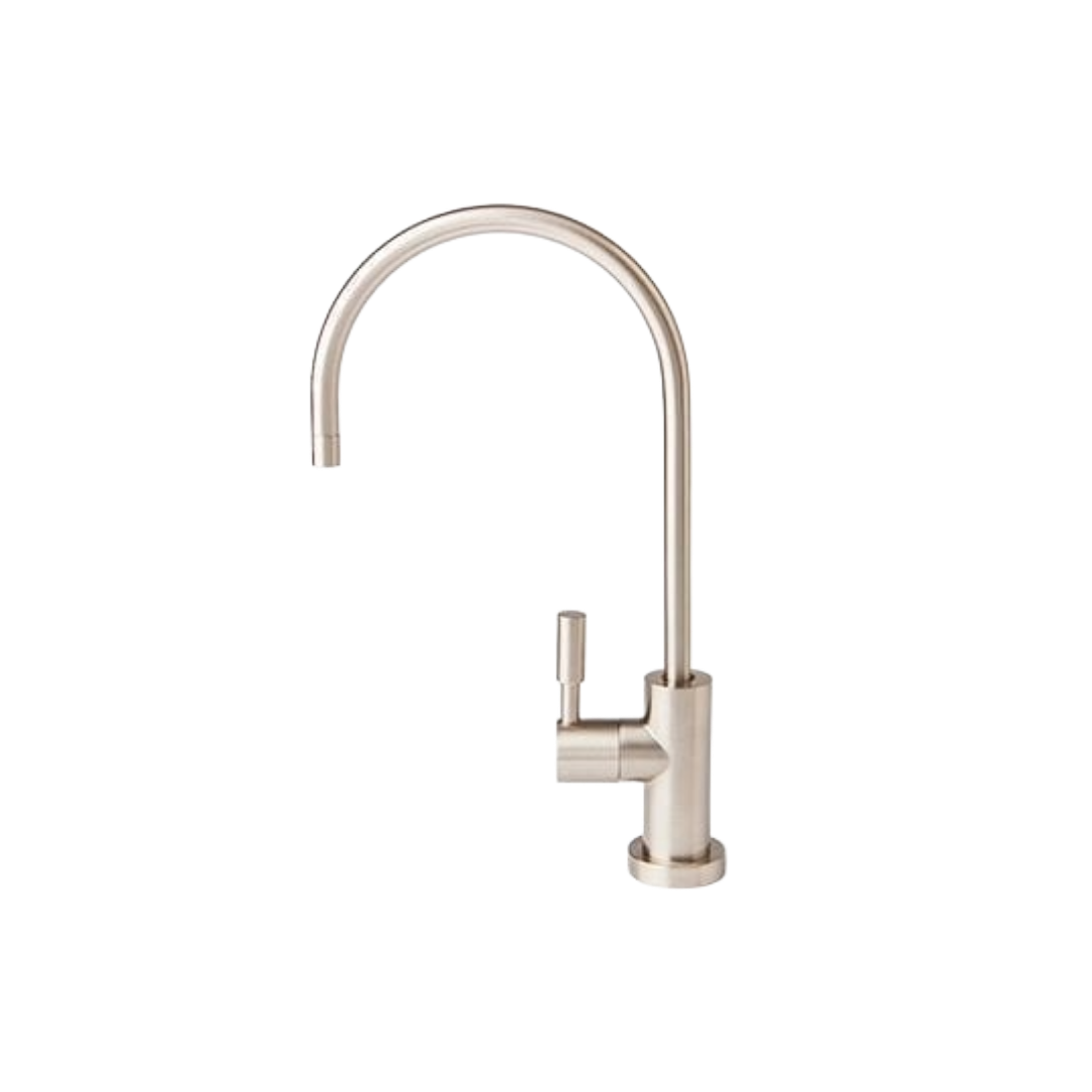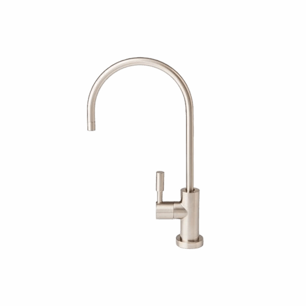This contemporary styled faucet has a brushed nickel finish. Looks great in any kitchen. It’s made in the USA. Features include lead free construction, smooth operating ceramic disk, brushed nickel finish. Has a high-reach, 360-degree, easy-swivel, 12” neck and non-drip protective spout. Two-year warranty.