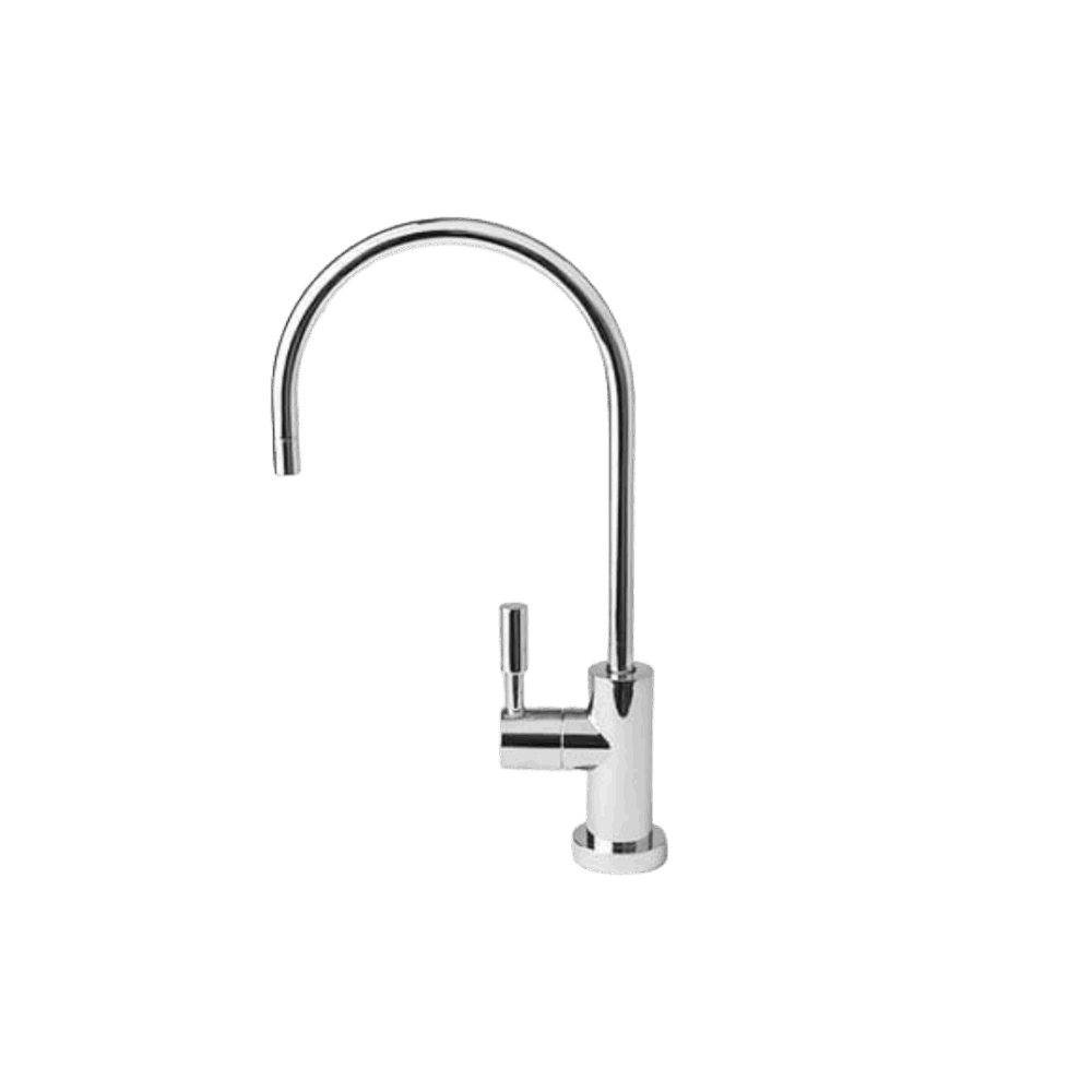 This contemporary styled faucet has a chrome finish. It’s perfect for any kitchen. It’s made in the USA. Features include lead free construction, smooth operating ceramic disk, brushed chrome finish. Has a high-reach, 360-degree, easy-swivel, 12” neck and non-drip protective spout. Two-year warranty.