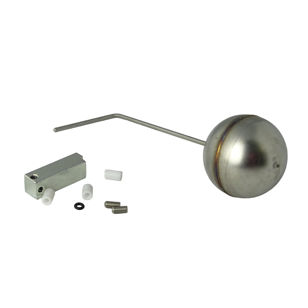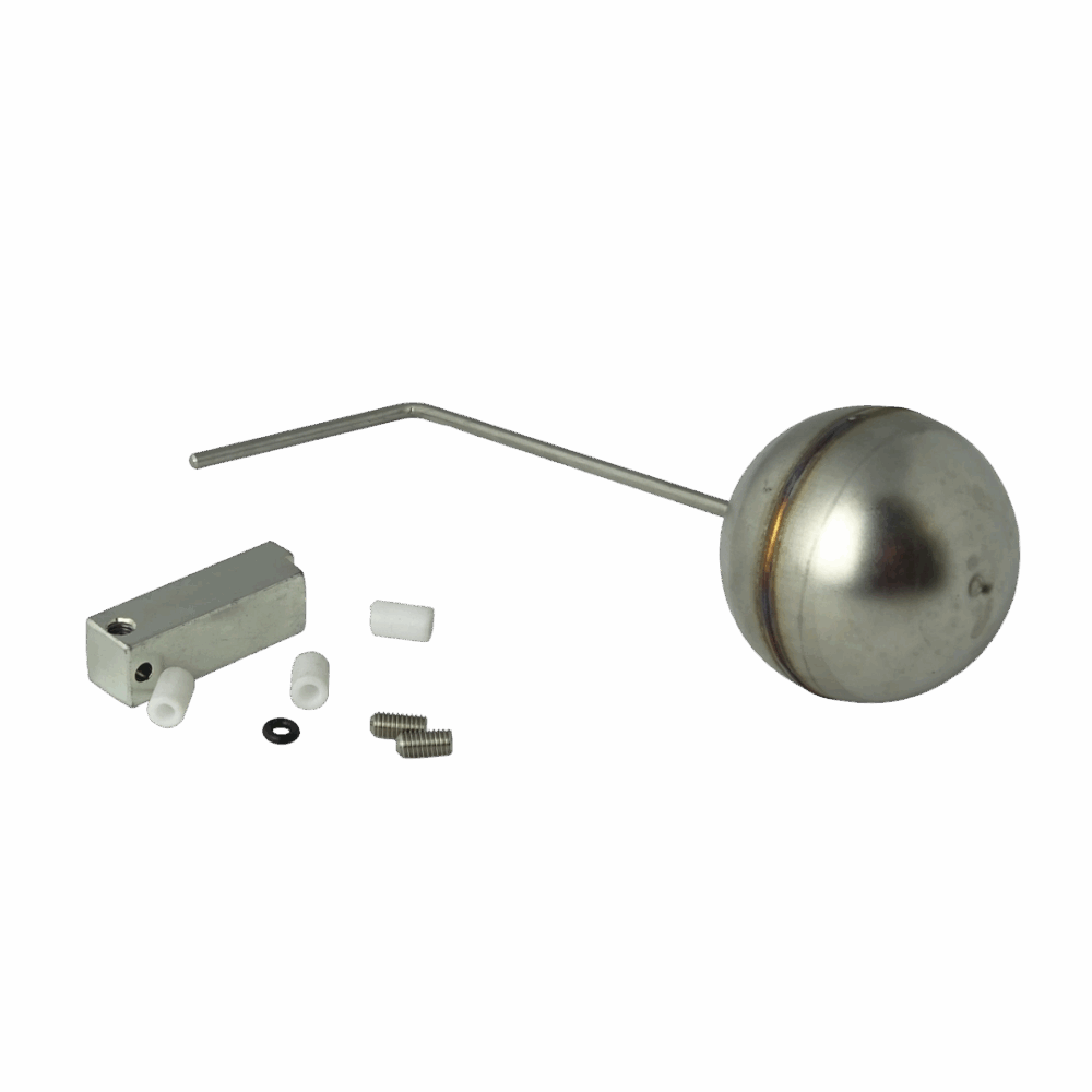 Float assembly kit. Includes 4″ float stem, float ball, bushing rings and actuating arm w/set screws (#9082). Used for boiling tank on MD-4, MIDI, AQUA FOUNTAIN, LIBERTY, FOUNTAIN CLASSIC. Used for Storage tank on AQUA-D, AQUA FOUNTAIN.