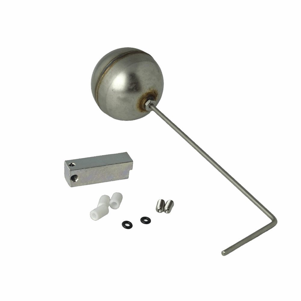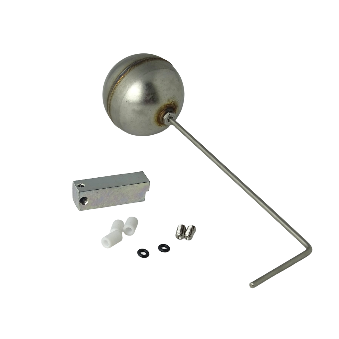 Float assembly kit. Includes 5 ” float stem, float ball, bushing rings and actuating arm w/set screws (#9082). Used for boiling tank on AQUA-D.