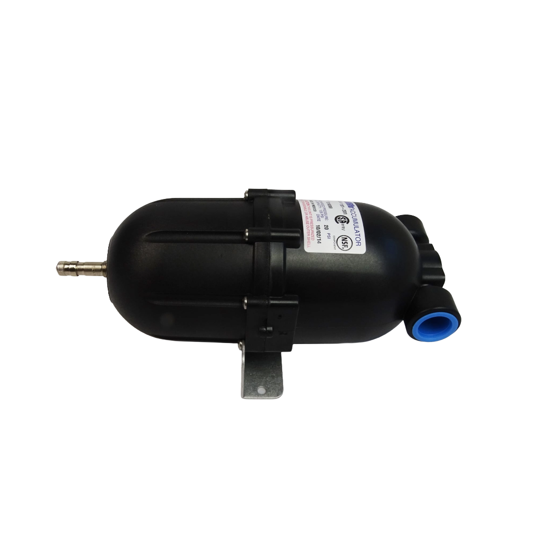 Ice maker hookup kit includes accumulator, fittings, and tubing (24 OZ). The accumulator helps maintain pressure in the line, especially when pumping water to the refrigerator spigot, ice maker and kitchen spigot.