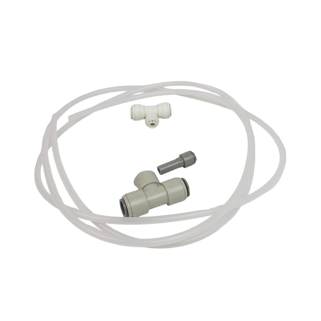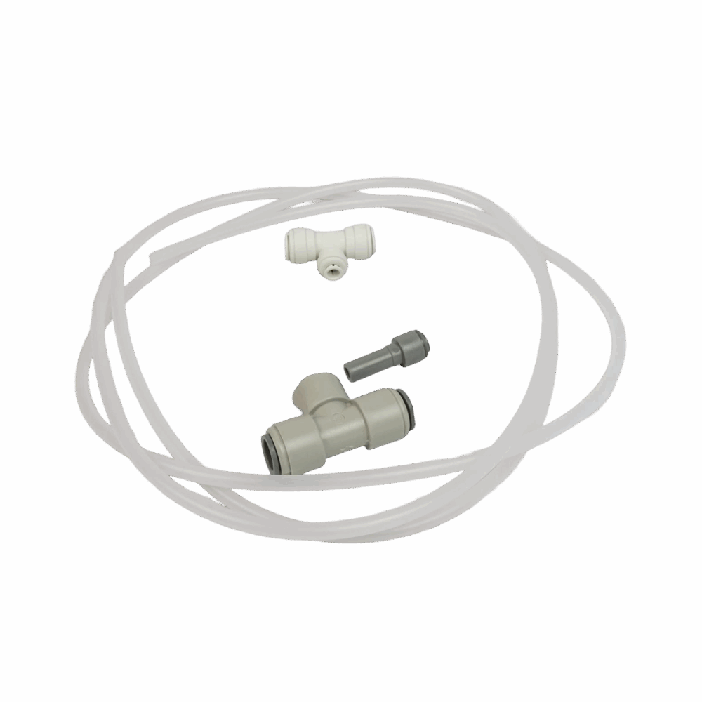 This ice maker hook up kit includes fittings and 1/4′ tubing.