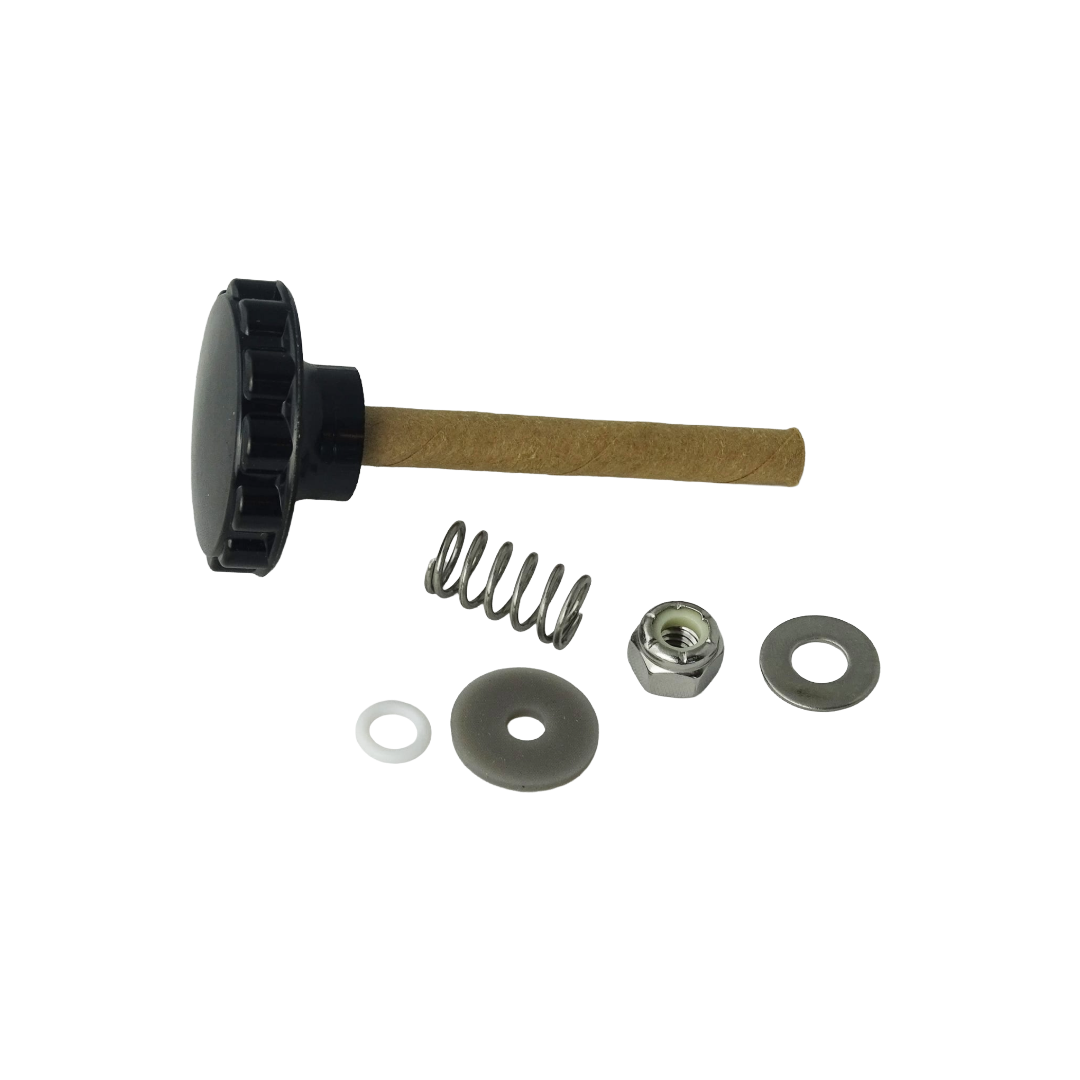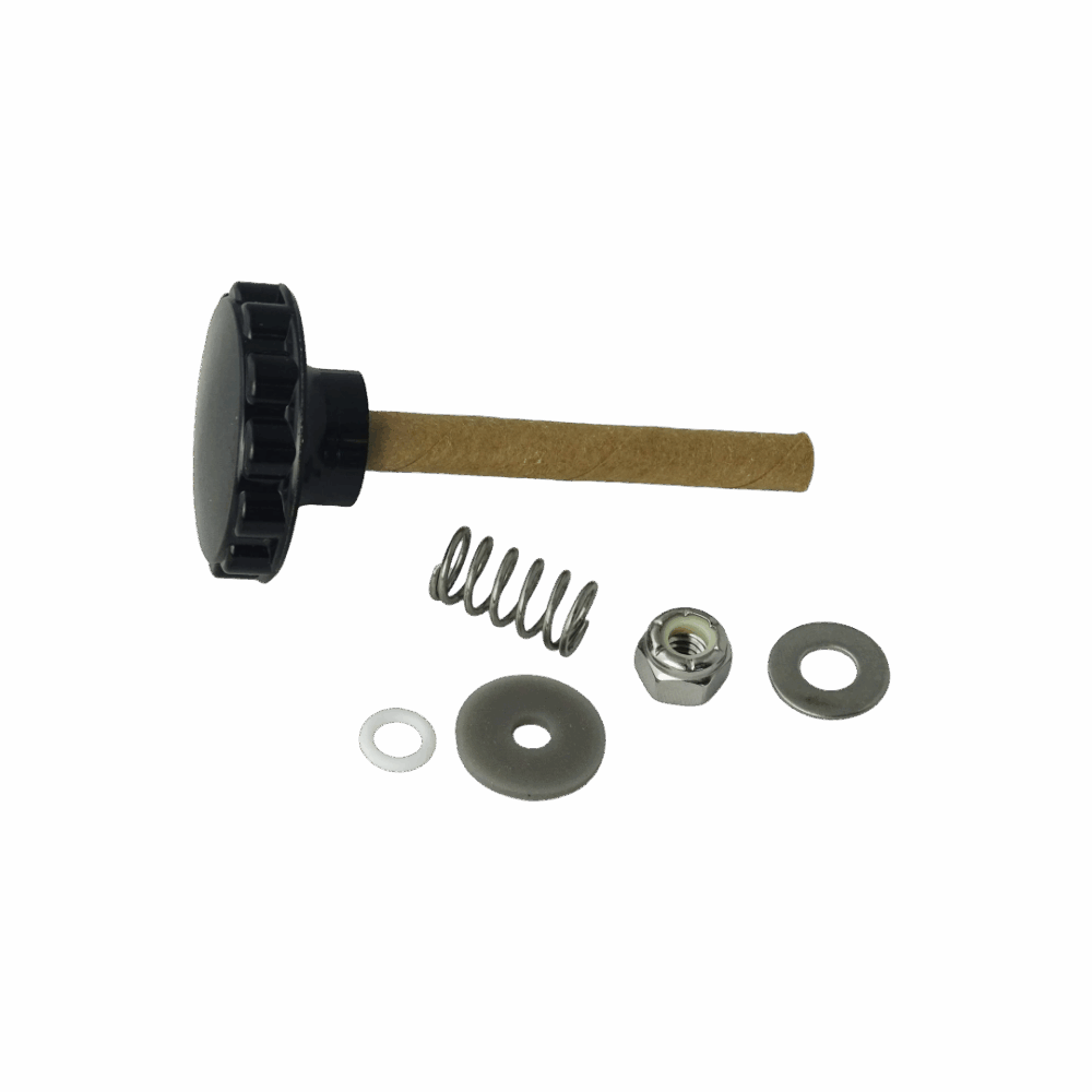 Lid knob kit includes knob w/stud, o-ring, gasket, washer, lock nut and spring.