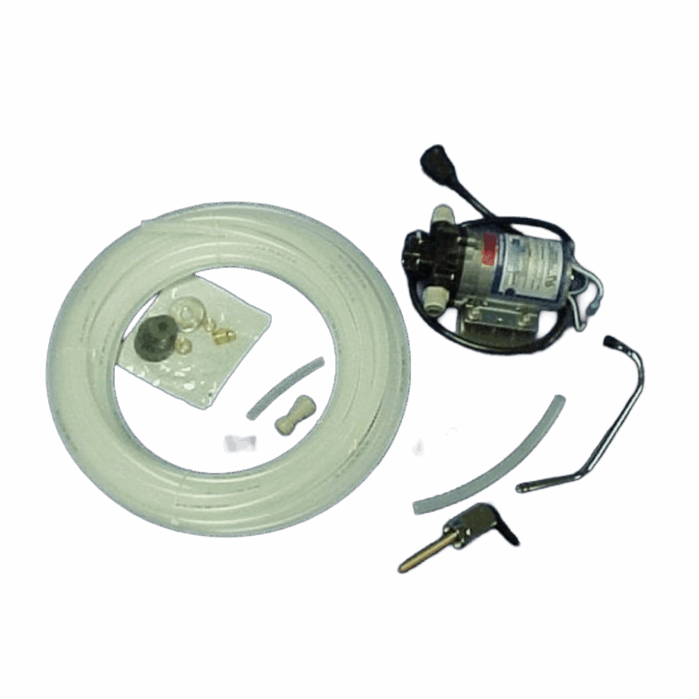 Includes non-UL listed pump with fittings 50 feet 1/2′ tubing 8″ extended reach faucet